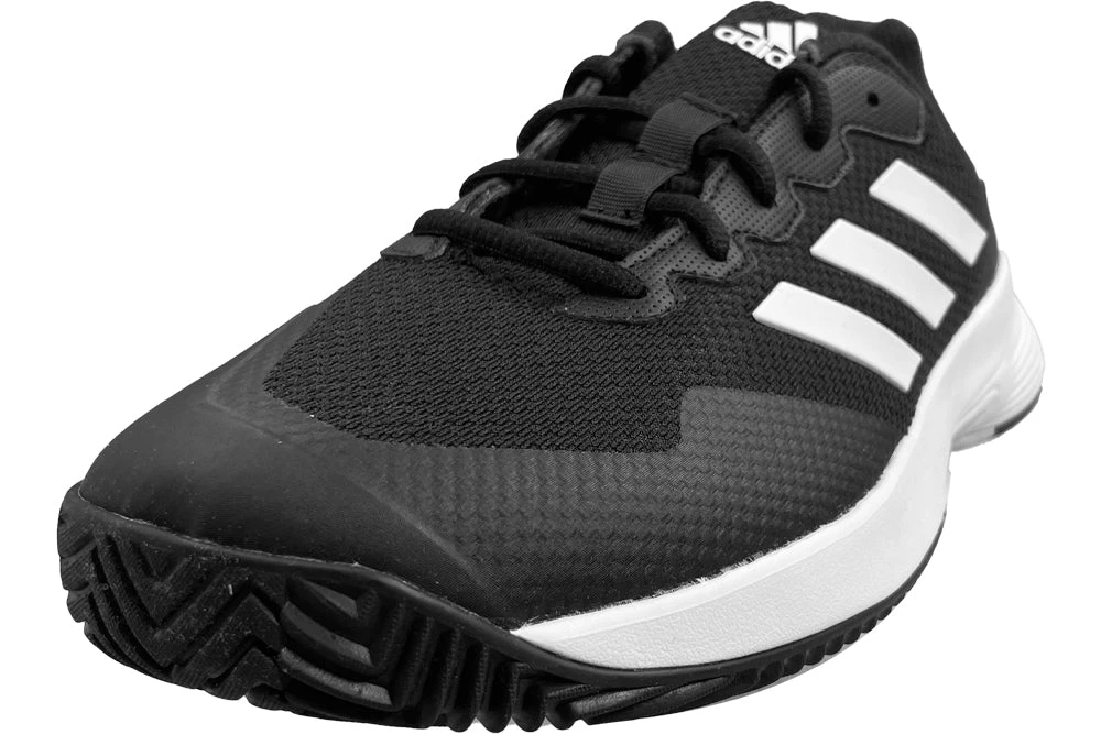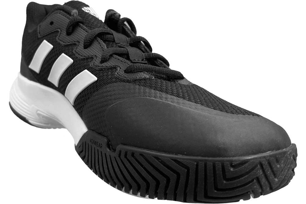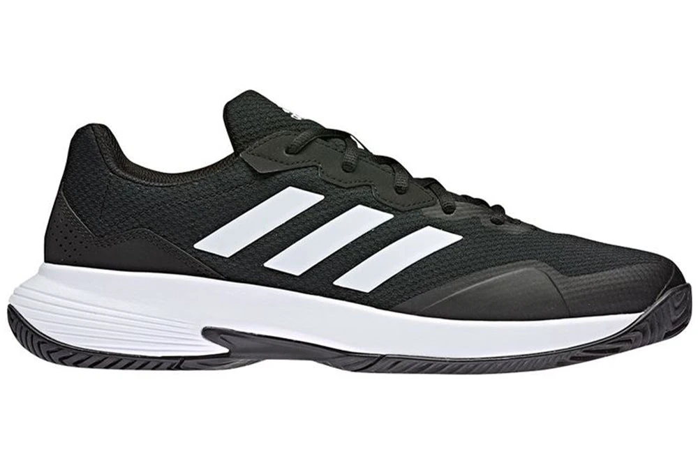 Raise your game without leaving your comfort zone. The breathable mesh upper on these adidas GameCourt tennis shoes keeps your feet cool. Supportive TPU helps mold it to the shape of your foot for a comfortable fit and secure lockdown. A Cloudfoam midsole softens every stride as you step up the intensity. Colour Shown: Core Black / Cloud White / Core Black.