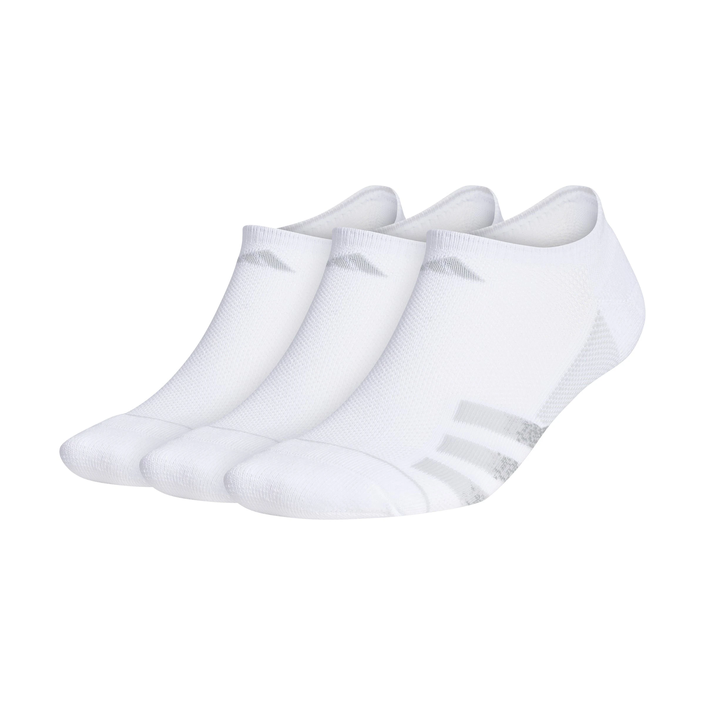 Ready for your workout. Ready for your weekend. These adidas training socks are technical enough for tough gym sessions but casual enough for everyday wear. A cushioned heel and toe combine with mesh ventilation on the top of the foot for distraction-free comfort. The no-show length means they stay hidden inside your trainers. Fabric: 74% recycled polyester / 24% cotton / 2% elastane. Colour Shown: White.