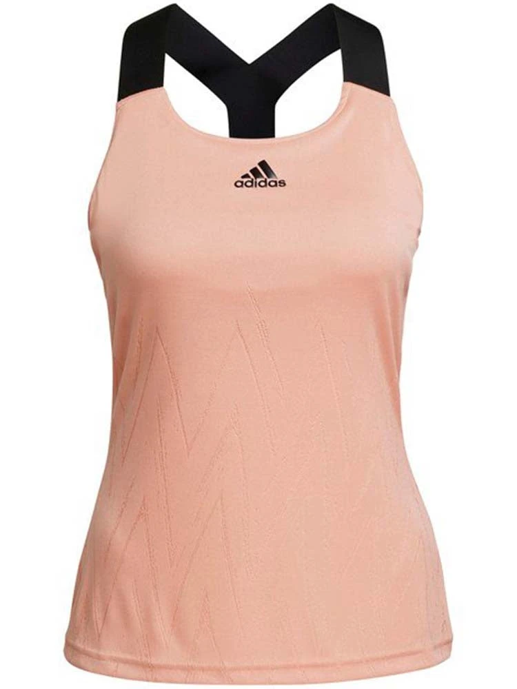 Marking the return of an icon. Showing off subtle graphics that mimic the mighty Barricade’s herringbone outsole, this tennis tank top makes an impression. Its elastic Y-back gives you the room you need for booming shots while adidas Aeroknit absorbs moisture to keep you ready for every point. This eye-catching top can be seen at North America’s biggest tennis tournament. Integrated bra. Fabric: 100% adidas Aeroknit recycled polyester jacquard. Colour Shown: Ambient Blush.