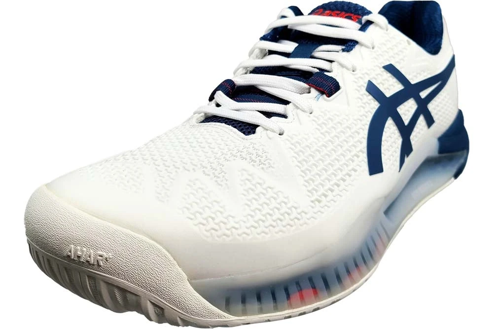 The Asics GEL-RESOLUTION® 8 (2E) tennis shoe promotes a responsive stride with a close-to-the-court feel. The FLEXION FIT® upper provides form-fitting support with the integration of DYNAWALL™ technology, which offers added midfoot stability during lateral movements and coast-to-coast coverage. Implementing a torque control feature in the heel counter, this shoe is also designed to help maintain a locked in feel during quick transitions. Renowned for its signature GEL® technology based cushioning in the heel and midfoot, this shoe significantly reduces the impact of shock from abrupt stop and go movements on court. Additionally, the model also incorporates an AHAR® compound in the outsole that works in conjunction with the PGUARD™ toe protector to increase traction on court and reduce the overall level of wear. Creating an accelerated response with a natural close-to-the-ground feel, the GEL-RESOLUTION® 8 tennis shoe allows you to approach your matches with confidence. Colour Shown: White/Mako Blue. This shoe is wider than the regular model.