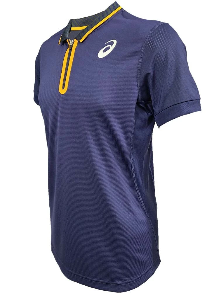 The MATCH POLO SHIRT features a knit fabric blend with excellent moisture management properties to increase comfort on court. This top includes a combination of moisture-wicking and water repellent panelling, while the fabric itself is formed with recycled materials that support a more sustainable manufacturing approach. Front zipper allows more airflow. Quick-dry fabric. Water repellent mesh panelling. Designed with recycled materials. Slim Fit. Colour Shown: Peacoat.