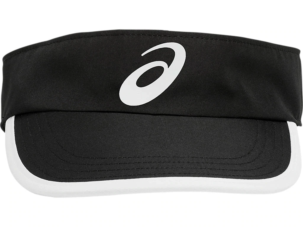 Shield your eyes from the sun in the performance visor for male and female tennis players from ASICS. Simply adjust for a good fit and get ready to serve. The visor is finished with our signature ASICS logo. Fabric: 100% Polyester Mesh. Colour Shown: Black / White.