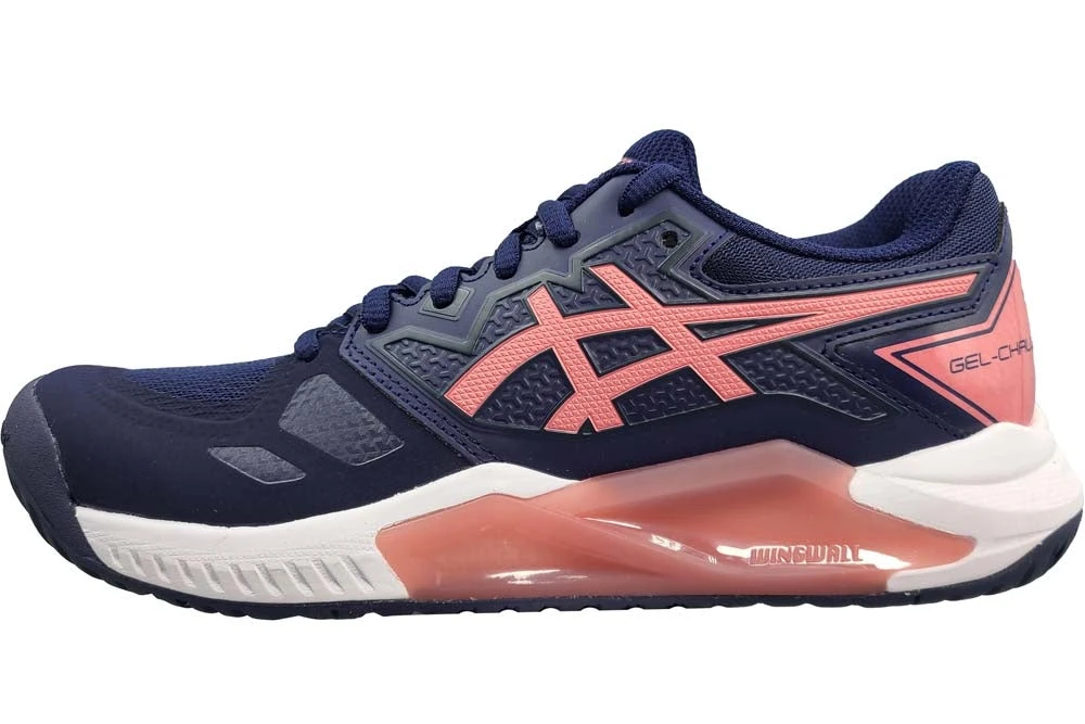 The Asics Gel Challenger 13 Women’s Tennis Shoe is made with Rearfoot and Forefoot Gel Cushioning systems for maximum comfort, along with Trusstic technology that gives the shoe its impressive stability. The upper fit has a personal heel fit system in the collar and has improved midfoot support with an extended Flexion Fit forefoot and synthetic leather midfoot brace for improved stability. The women’s Gel Challenger tennis shoe is the perfect choice for competitive tennis players. Colour Shown: Peacoat / Smokey Rose.