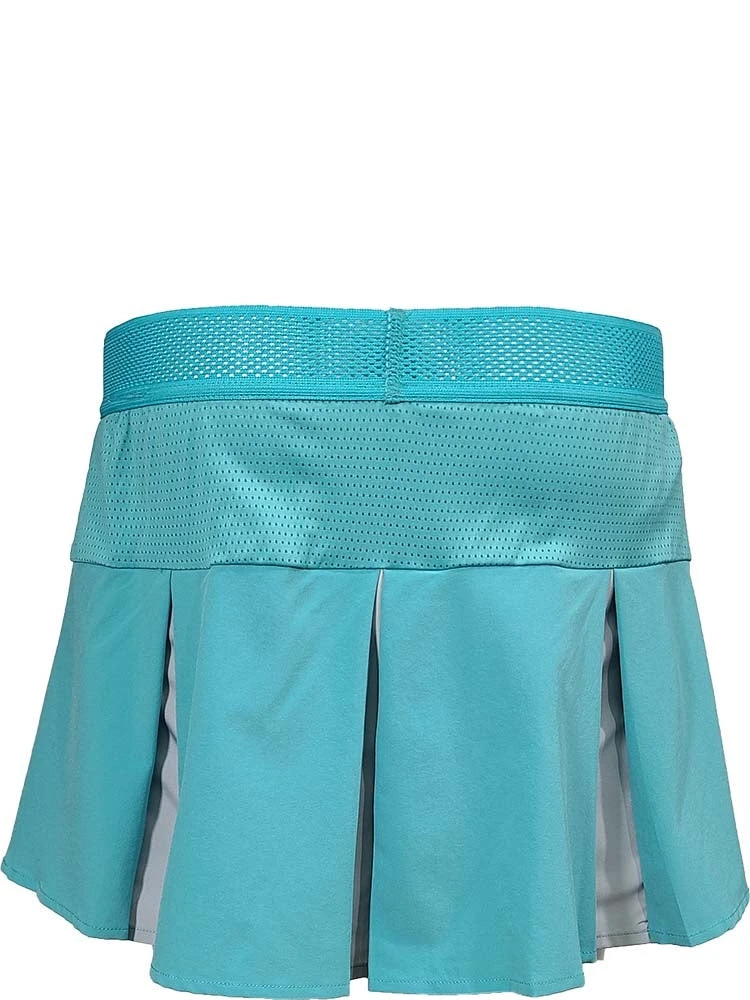 The TENNIS PLEATS SKORT is designed to complement full-length court coverage and agile movement, featuring an inner sprinter compression short that offers better support during lateral motions. Additionally, this skort implements a mesh panelling on the waistband and back panel to increase airflow, while slits in the back hem help improve mobility. Inner sprinter short to help stash extra tennis balls. Mesh vents to increase breathability and keep you cool. Side slits that provide greater flexibility. Colour Shown: Techno Cyan.
