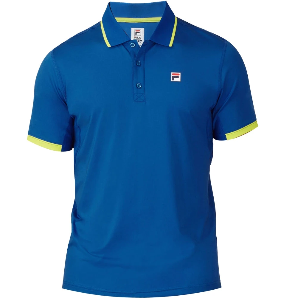 F-Box heat transfer logo. Rib collar. 3 button placket. Breathable mesh inserts at underarm. Contrast color sleeve hem band. Tearaway main label. 50+ UV protection. Fabric: recycled poly jersey: 94% recycled nylon /6% spandex /recycled rally mesh: 90% recycled polyester /10% spandex. Colour Shown: Blue Iolite / Evening Primrose.