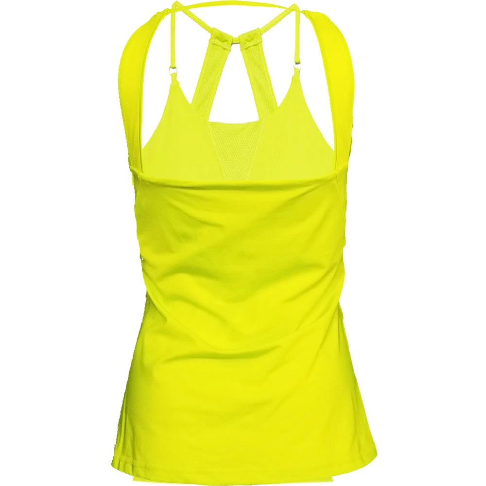 This Cami Tank feature a contrast color mesh inserts at front neckline and back straps and tearaway main label. F-Box heat transfer logo. Wicking and breathable. Anti-odor. 50+ UV protection. Fabric: recycled ace jersey: 75% recycled nylon / 25% spandex | recycled rally mesh: 90% recycled polyester / 10% spandex. Colour Shown: Evening Primrose.