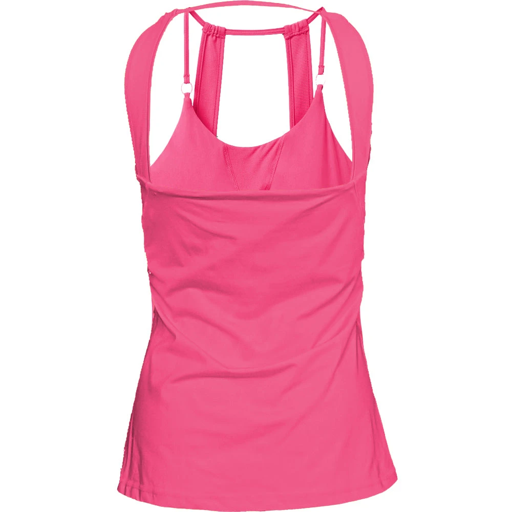 This Cami Tank feature a contrast color mesh inserts at front neckline and back straps and tearaway main label. F-Box heat transfer logo. Wicking and breathable. Anti-odor. 50+ UV protection. Fabric: recycled ace jersey: 75% recycled nylon / 25% spandex | recycled rally mesh: 90% recycled polyester / 10% spandex. Colour Shown: Pink Peacock.