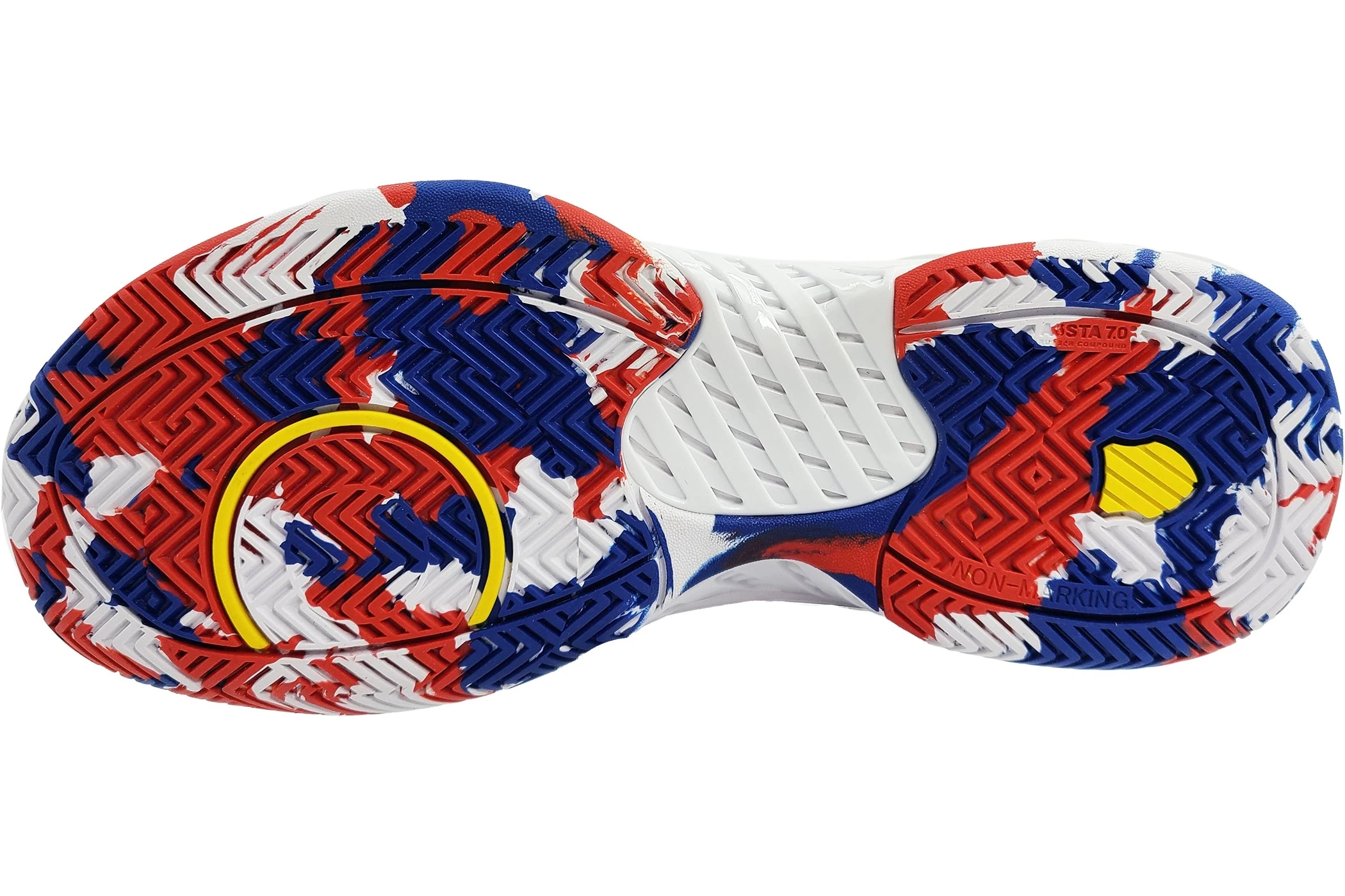 Building on the success of the most important tennis franchise in company history, Hypercourt, K-Swiss introduces a new hero model to the family targeting a young, competitive, aggressive player. The Hypercourt Supreme incorporates new technologies including Surge 7.0 for maximum energy return and Dragguard 7.0, elevating outsole durability. Additionally, a comfortable upper bootie construction ensures a secure fit. Ideal for hard court or clay court playing surfaces. Colour Shown: White / Classic Blue / Berry Red.