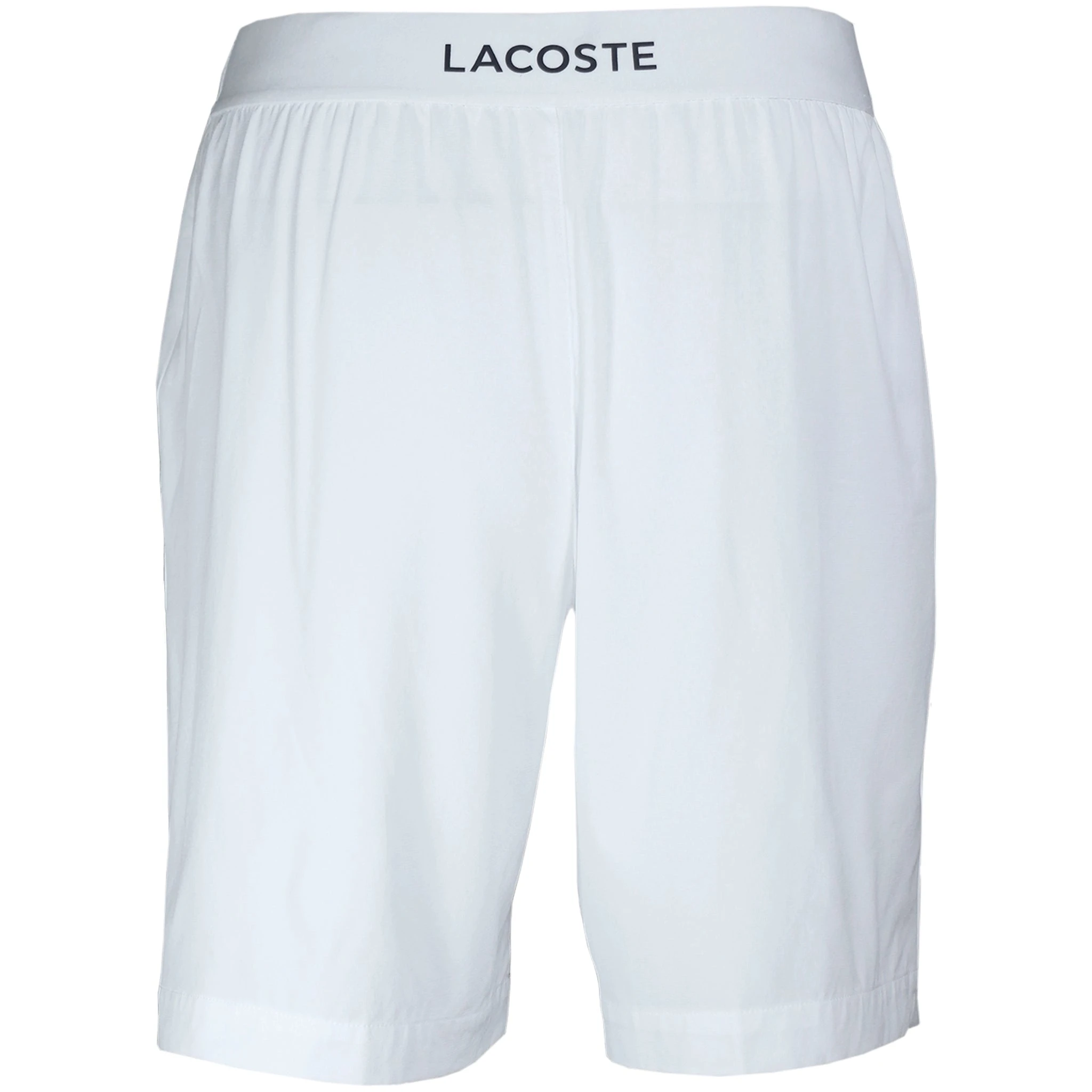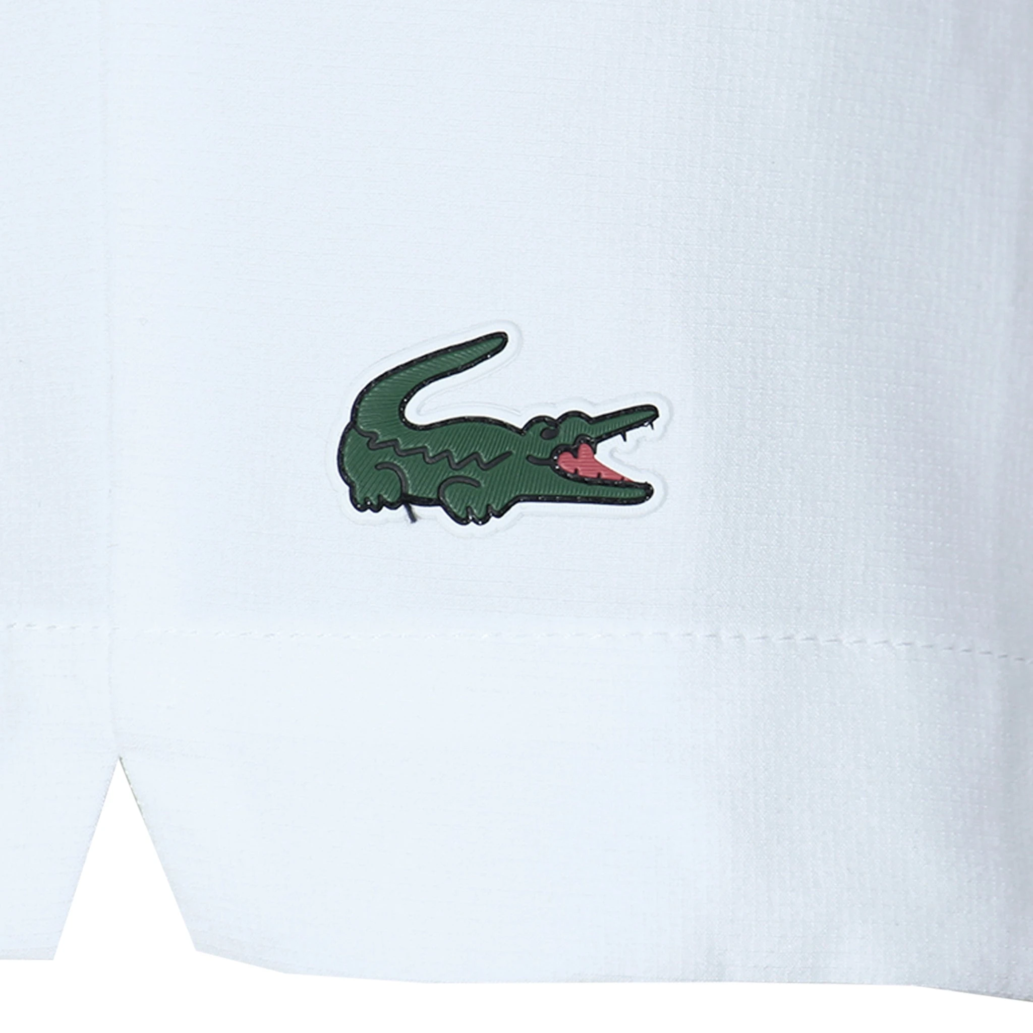 These streamlined shorts blend performance and simplicity, crafted in ultra-lightweight ripstop fabric for unmatched comfort during physical activity. The iconic green crocodile and brand lettering on the back of the waistband add signature style to this athletic piece. The shorts feature a regular fit, ultra-light stretch ripstop fabric, side pockets, an elasticized waistband with Lacoste lettering on the back, and a green crocodile transfer on the thigh. The main fabric is made of 90% polyester and 10% elastane, the body lining is made of 90% polyester and 10% elastane, and the belt outer is made of 59% polyamide, 35% polyester and 6% elastane. Colour Shown: White / Navy.