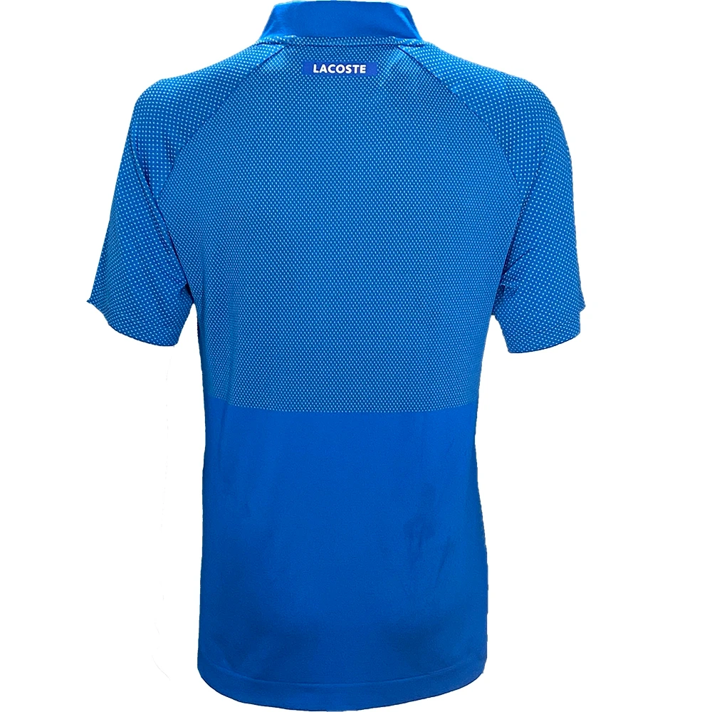 An uncompromising, high-tech polo. Crocodile signature precision and performance both on and off the court. Daniil Medvedev’s choice. Slim fit, adjusted cut: Made for movement. Incrusted collar/encrusted collar: Inspired by the Lacoste archives. Raglan sleeves: For stronger serves. Rigid crocodile sewn on: Lacoste, reinvented. Fabric: Polyester 85%, Polyamide 15%. Collar: Polyester 79%, Polyamide 21%. Colour Shown: Blue / Green.