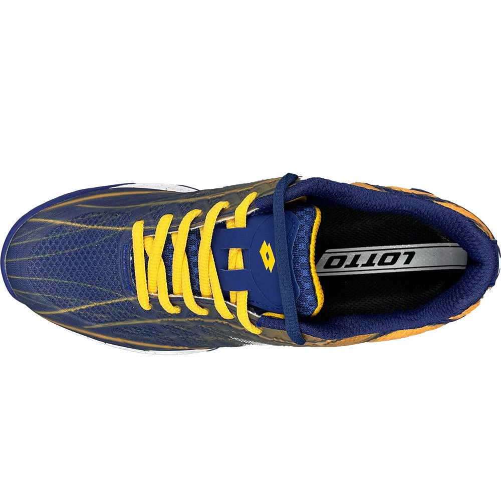 Based on LOTTO VIPER ULTRA technology, this shoe offers a new fresh look and maintaining all the technical features that have been approved by our professional players. For mid-level and high-level regular players looking for the right balance between STABILITY and DURABILITY. Colour Shown: Blue / Saffron.