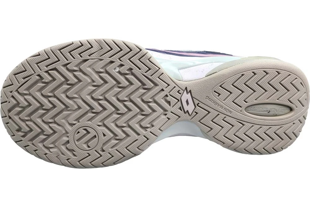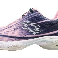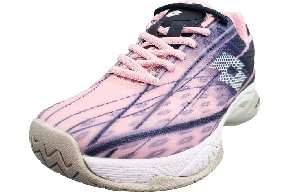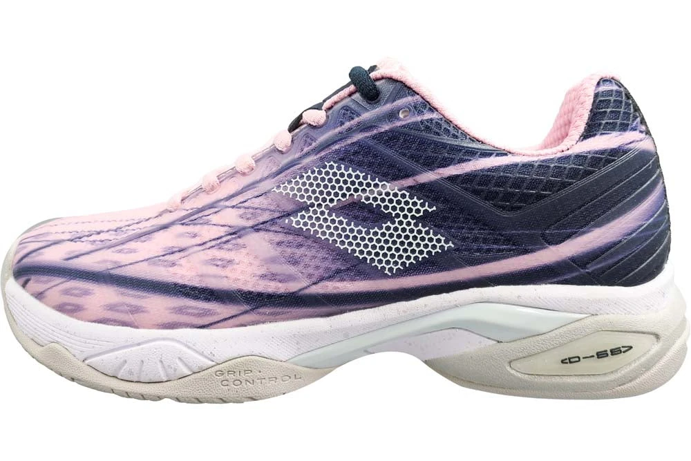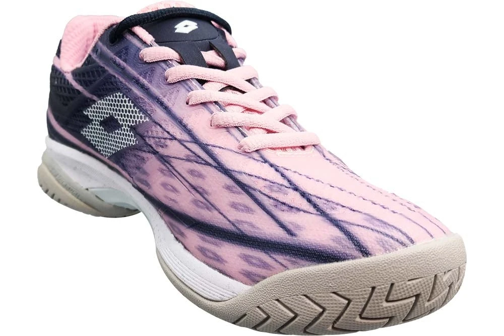 Endorsed by professional players, Mirage is developed from Lotto long-term technical experience and heritage. Realized with the best technical features like Lotto’s Syn-Pulse technology, and the use of innovative materials. Design, shapes and lines recall the lightness, speed and stability of the product. Colour Shown: Pink / All White / Navy Blue.