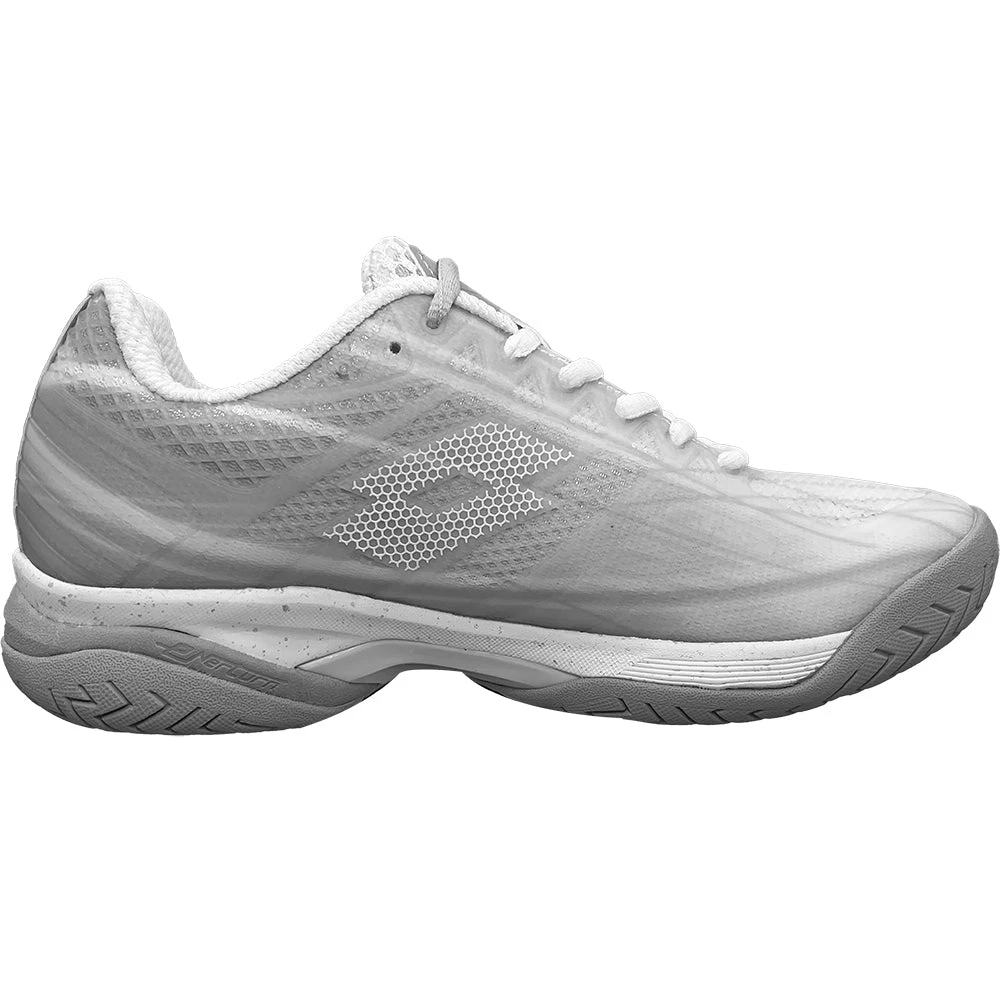 Endorsed by professional players, Mirage is developed from Lotto long-term technical experience and heritage. Realized with the best technical features like Lotto’s Syn-Pulse technology, and the use of innovative materials. Design, shapes and lines recall the lightness, speed and stability of the product. Colour Shown: White / Silver Metal 2.