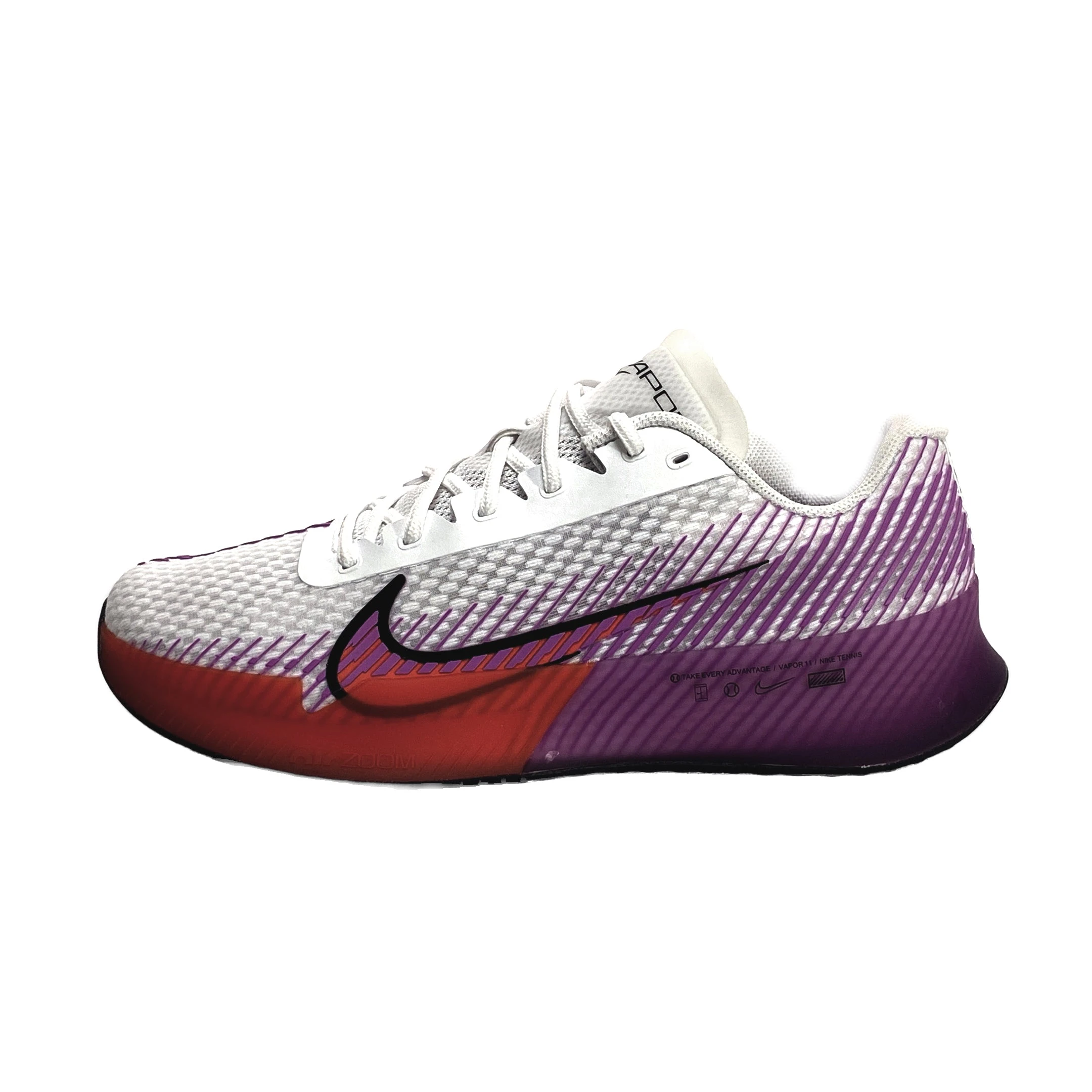 Validated by the greats of the game, the Zoom Vapor is back in its 11th version and better than ever. Lower to the court and loaded with speed components, it helps you play at a fast pace with enough support to keep you bobbing and weaving for sets on end. Mainstays like the ultra-trusted moulded sidewall and breathable upper complement a durable, quick-moving design that you’ve come to know and love. Colour Shown: White / Picante Red / Black / Fuchsia Dream.