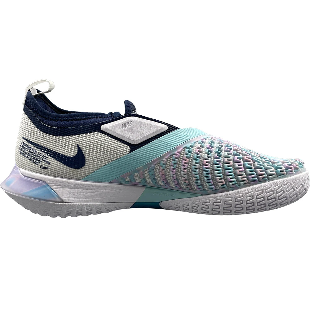 Meet the next generation of tennis performance. Built using years of athlete data, the NikeCourt React Vapor NXT brings top-notch traction and an innovative cushioning system, so you can play at your best during your fastest and fiercest matches. Similar to the Vapor Cage 4, it utilizes durable rubber and plastic in high-wear areas, and the laces on the medial side are shielded. There is also a sock-like fit with attached tongue, and a new herringbone outsole. Designed for wear on hard court surfaces. Removable insole. Heel pull tab. Colour Shown: White / Midnight Navy-Glacier Ice.