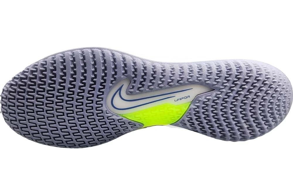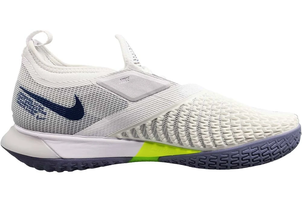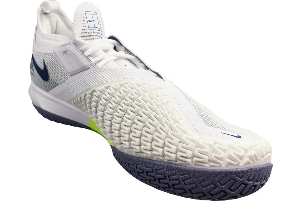 Meet the next generation of tennis performance. Built using years of athlete data, the NikeCourt React Vapor NXT brings top-notch traction and an innovative cushioning system, so you can play at your best during your fastest and fiercest matches. Similar to the Vapor Cage 4, it utilizes durable rubber and plastic in high-wear areas, and the laces on the medial side are shielded. There is also a sock-like fit with attached tongue, and a new herringbone outsole. Designed for wear on hard court surfaces. Removable insole. Heel pull tab. Colour Shown: White / Mystic Navy-Ashen Slate-Volt.