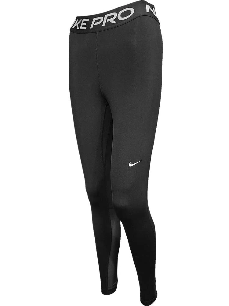 The Nike Pro Leggings are made from sweat-wicking fabric and with mesh across the calves to keep you cool and dry. Soft, stretchy fabric moves with you as you sprint, lunge and stretch. This product is made from at least 50% recycled polyester fibres. Tight fit for a body-hugging feel. Mid-rise. Fabric: Body: 83% polyester/17% elastane.Mesh: 81% polyester/19% elastane. Colour Shown: Black/White.