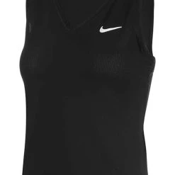 The NikeCourt Victory Tank is a soft, stretchy court essential that wicks sweat so you can stay focused on your match. Slim fit for a tailored feel. V-neck. Racerback. Fabric: 89% polyester/11% elastane. Color Shown: Black / White.