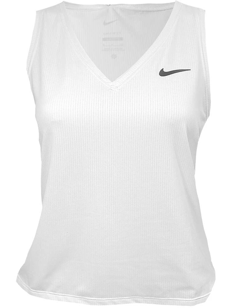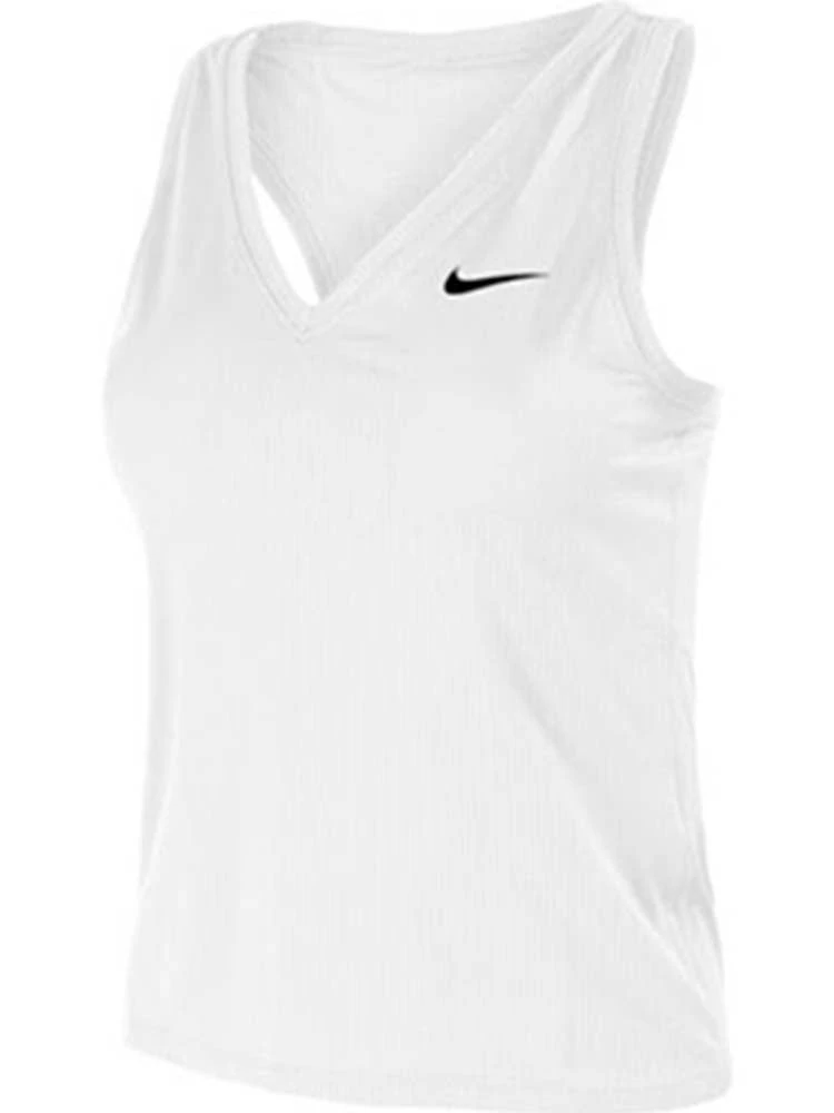 The NikeCourt Victory Tank is a soft, stretchy court essential that wicks sweat so you can stay focused on your match. Slim fit for a tailored feel. V-neck. Racerback. Fabric: 89% polyester/11% elastane. Color Shown: White / Black.