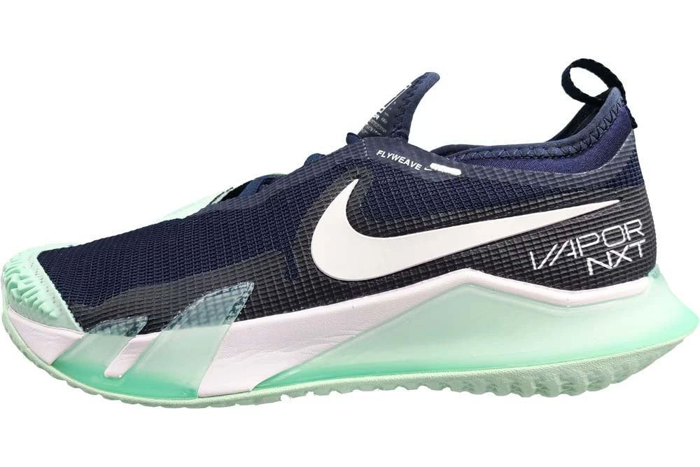 Meet the next generation of tennis performance. Built using years of athlete data, the NikeCourt React Vapor NXT brings top-notch traction and an innovative cushioning system, so you can play at your best during your fastest and fiercest matches. Similar to the Vapor Cage 4, it utilizes durable rubber and plastic in high-wear areas, and the laces on the medial side are shielded. There is also a sock-like fit with attached tongue, and a new herringbone outsole. Designed for wear on hard court surfaces. Removable insole. Heel pull tab. Shown: Obsidian / White-Mint Foam.