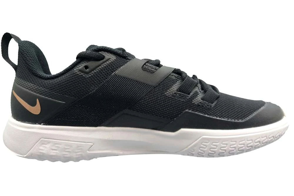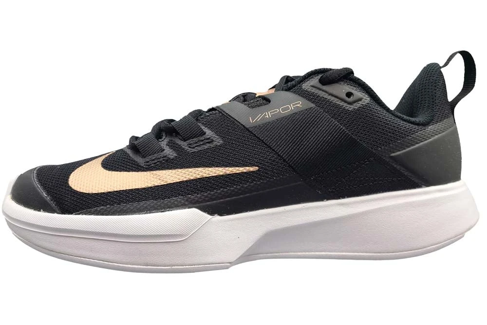 Like a racing car, the NikeCourt Vapor Lite keeps most of its features under the bonnet. Its unique cushioning system is built to help you get to the ball as fast as you can. An innovative, 4-point strap takes inspiration from racing-car harnesses to help keep your foot locked down during your fiercest matches. All in a lightweight, breathable design that’s incredibly comfortable. Colour Shown: Black / Metallic Red Bronze / White.