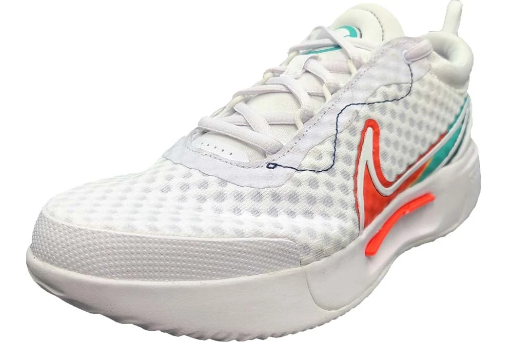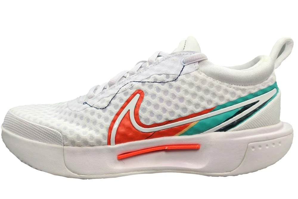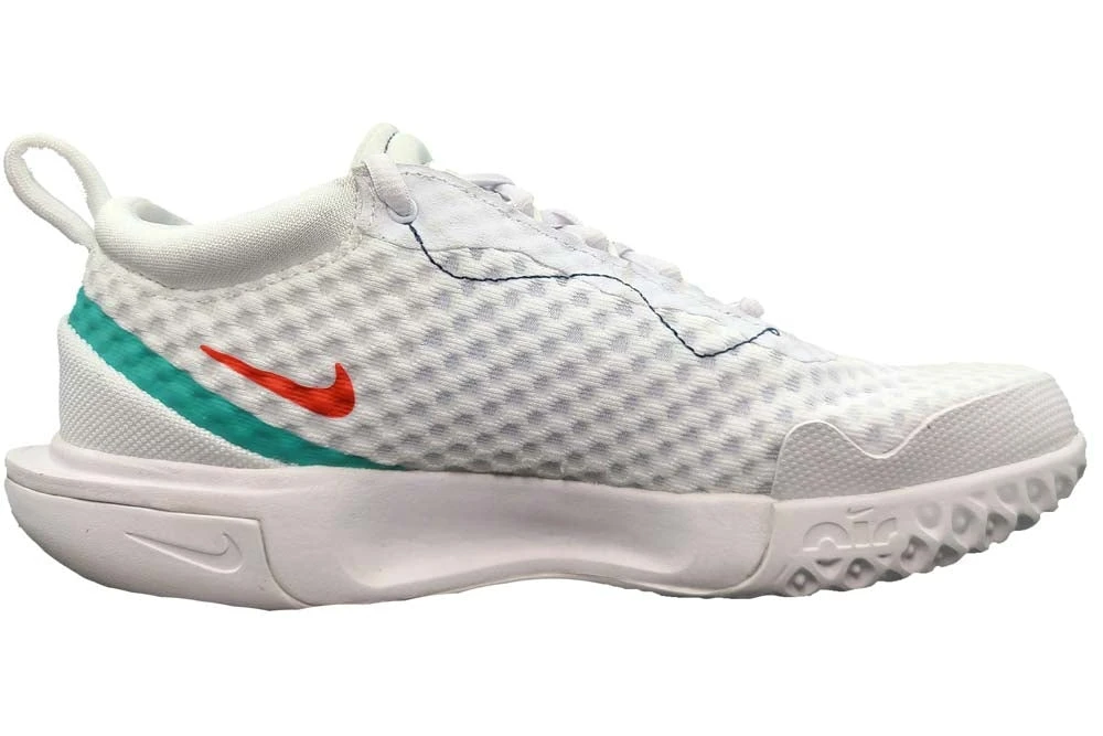 Get the most out of every step in the NikeCourt Zoom Pro. Using insights from our top athletes, we added forefoot cushioning for extra bounce and spring when you push off to serve. After removing as much weight as we could without sacrificing durability, we also made sure this incredibly lightweight design was extremely comfortable. Thanks to a plush collar and breathable mesh, you’ll get the cool, cushioned feel you love so you can focus on playing at your best. Colour Shown: White / Washed Teal-Habanero Red.