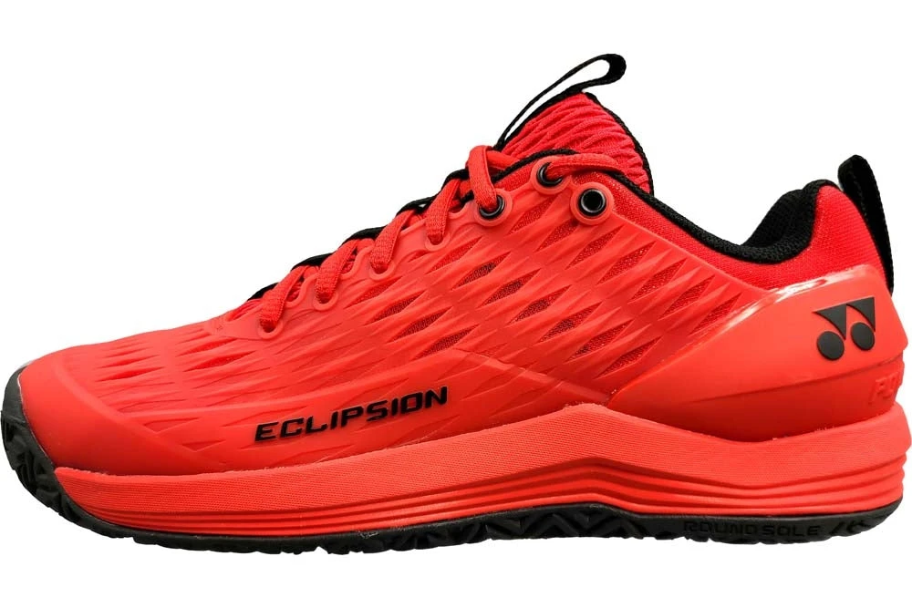 The shoe of choice for Stan Wawrinka ! The Yonex Power Cushion Eclipsion 3 continues to build on the success of its popular predecessor by continuing to offer excellent comfort, stability and durability for serious tennis players. Yonex’s signature Power Cushion technology offers exceptional cushioning and repulsion under foot, injecting energy into every step you take. A re-engineered fit allows full extension of the big toe for optimal power output while the midfoot and heel better fit the foot to keep it locked in and protected. Other features: PU upper with Guard Durable Skin technology for added support and durability in key areas. Plenty of exposed mesh for breathability. An interlocking shank and heel counter offers locked-in support from the midfoot to the heel. Endurance Rubber outsole in a modified herringbone tread pattern offers great traction and durability on any court surface. All in all, a great shoe offrering excellent balance between performance, comfort and durability. Colour Shown: Red.